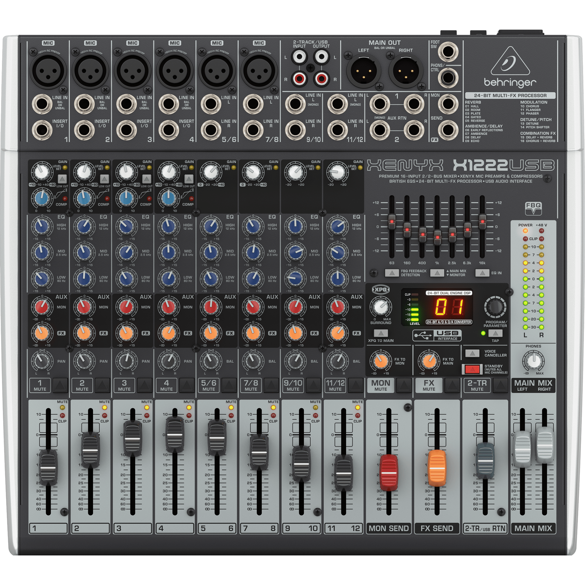 Behringer Xenyx X1222USB 12-Channel 16-Input 2/2-Bus Mixer & USB Interface (000-A0I02-00010)